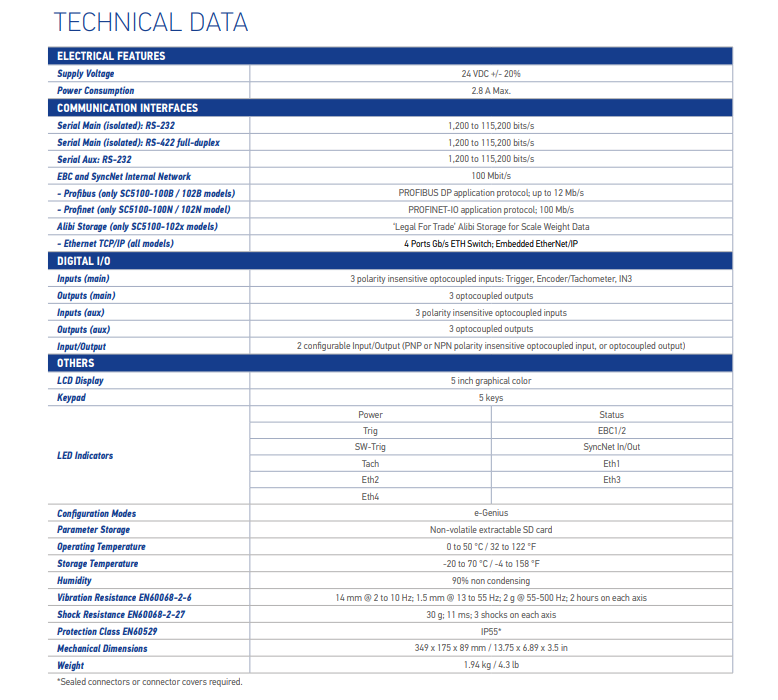得利捷SC5100固定式工業系統控制器的設計包含了整個固定式工業掃描器組合(DS/DX系列激光閱讀器、AV系列掃描器、DM系列體積測量儀)的本公司產品集成,且支持第三方組件(如RFID、秤、網絡相機)的集成開放接口。其結果是完全支持的系統解決方案(DWS=Scan-Dim-Weight,BHS=Baggage Handling等),并為新的應用解決方案提供